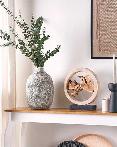 Decorative terracotta vase in a black and white colour combination with a glossy finish. A timeless accent piece for elegant interiors.