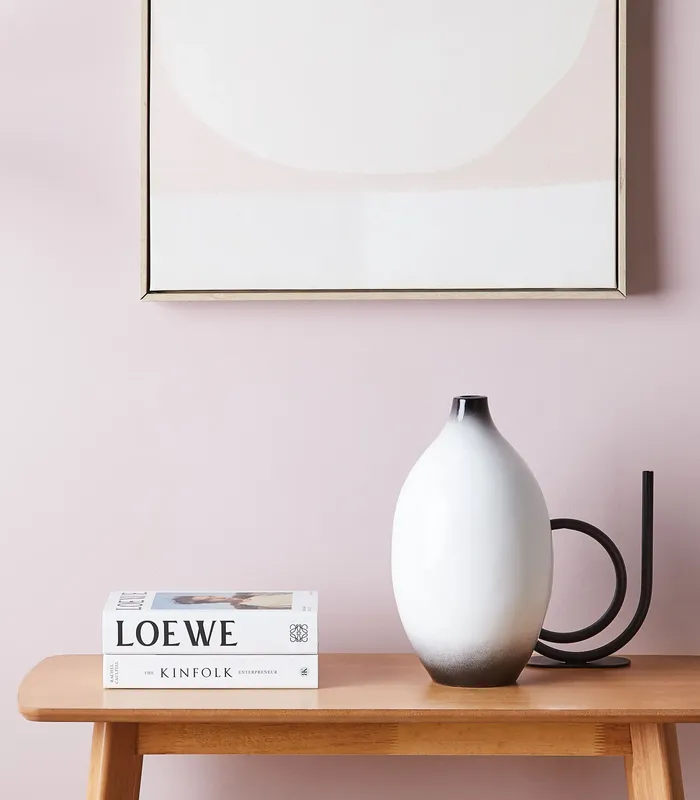 Handmade porcelain table vase in off-white with a clean, modern design. A minimalist decorative accent for contemporary interiors.