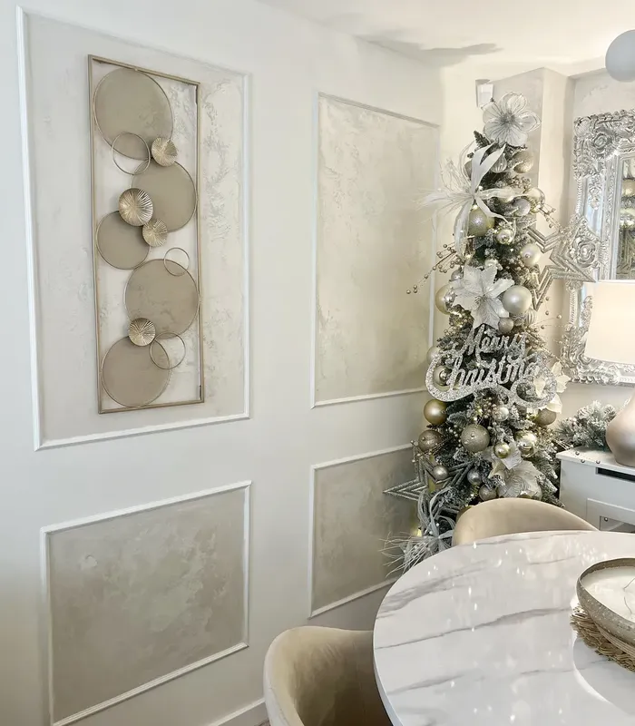 Metal wall art with irregularly arranged gold circles in a slim frame. An elegant decorative accent for modern and minimalist interiors.